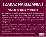 Prosimy również o przestrzeganie zakazu umieszczania na wiatach przystankowych (jako miejscu publicznym do tego nieprzeznaczonym) ogłoszeń, plakatów, afiszów, apeli, ulotek, napisów lub rysunków bez zgody zarządzającego przystankiem. Zakaz ten wynika z art. 63a ustawy z dnia 20 maja 1971 r. Kodeks wykroczeń i jego nieprzestrzeganie jest wykroczeniem zagrożonym karą ograniczenia wolności lub grzywny.