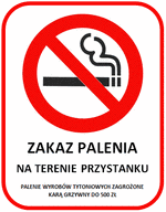 Przypominamy, że przystanki autobusowe są miejscami publicznymi, które zgodnie z Ustawą z dnia 9 listopada 1995 r. o ochronie zdrowia przed następstwami używania tytoniu i wyrobów tytoniowych objęte są całkowitym zakazem palenia wyrobów tytoniowych. Za nieprzestrzeganie zakazu palenia grozi kara grzywny do 500 zł.