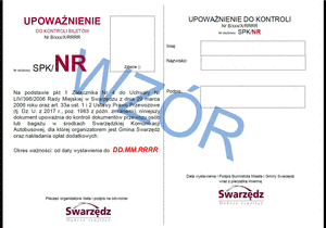> Kontrolę biletów prowadzą osoby upoważnione przez Burmistrza Miasta i Gminy Swarzędz. Kontroler przystępujący do kontroli biletowej i w trakcie jej prowadzenia musi posiadać przypięty w dobrze widocznym dla pasażera miejscu identyfikator. Identyfikator nie może być trzymany w ręce. W 2013 roku obowiązuje nowy wzór identyfikatora (zobacz).