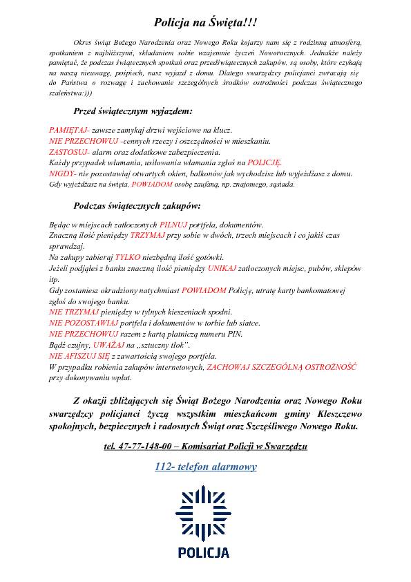 mł. asp. Łukasz Lipkowski tel. 47 77 147 97, kom. 519 064 720 e-mail: dzielnicowy.swarzędz9@po.policja.gov.pl