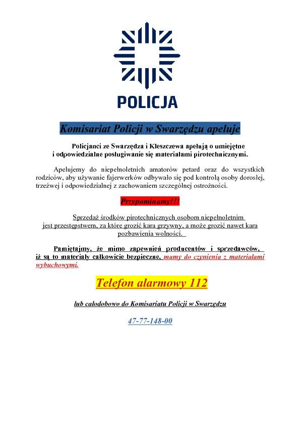 asp. Anna Wilińska tel. 47 77 147 96, kom. 786 936 070 e-mail: dzielnicowy.swarzędz4@po.policja.gov.pl