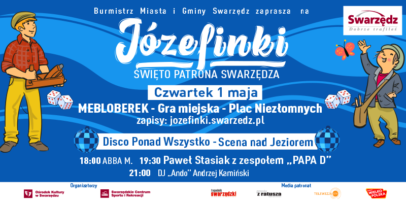 Przygotujcie się na niezapomnianą przygodę i wspólną zabawę! Józefinki od lat integrują mieszkańców Swarzędza i okolic. 1 maja nasze miasto tętni życiem. Każdy znajdzie coś dla siebie: radość, muzykę emocjonujące wyzwania, wieczorne tańce nad jeziorem.